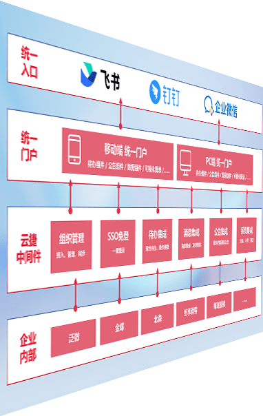 对协作平台提供支持服务,,,,支持企业应用与协作平台对接,,,,包含组织同步、、、消息集成、、、、待办集成等。。。。支持目前主流的协作平台:钉钉、、、企微和飞书。。。。